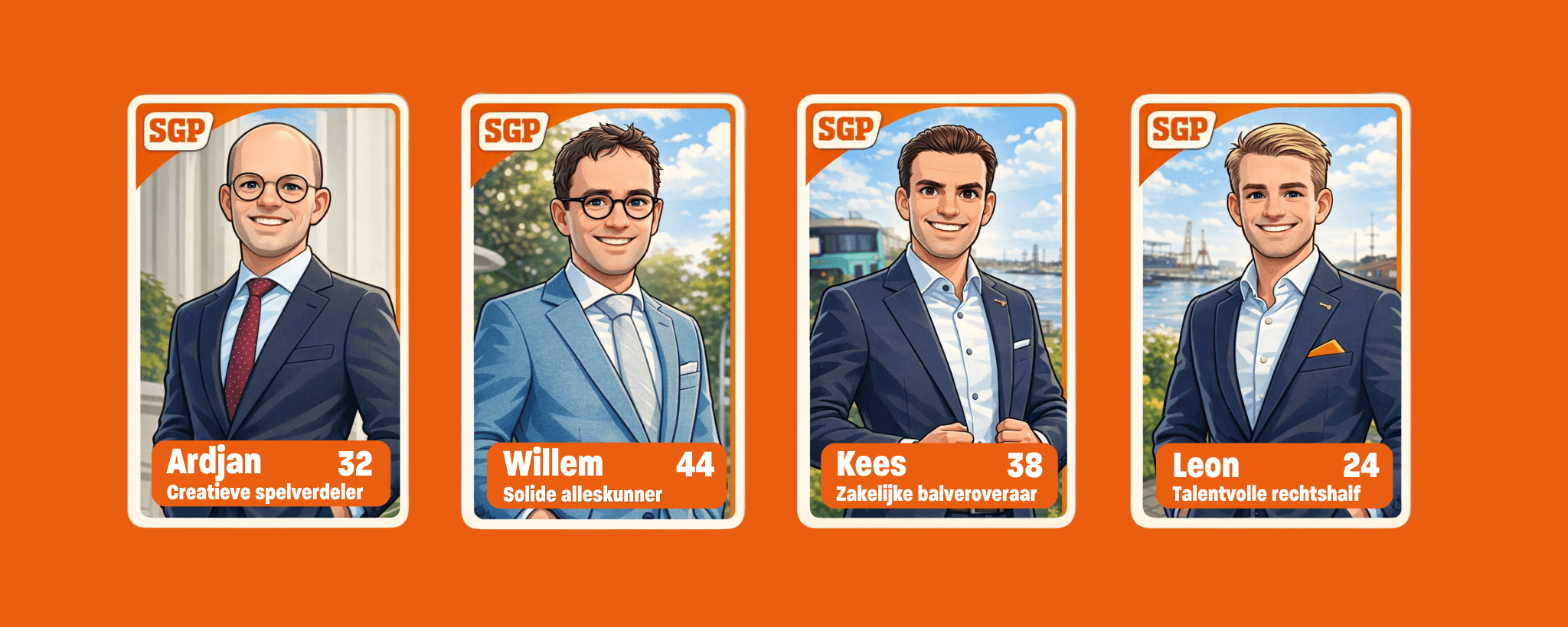 Met een speciale spaarplaatjesactie worden de vier SGP-gezichten (raadsleden Ardjan Boersma en Willem Goudriaan, duo-raadsleden Kees Leenhouts en Leon Donk) op een toegankelijke en herkenbare manier gepresenteerd aan het dorp.